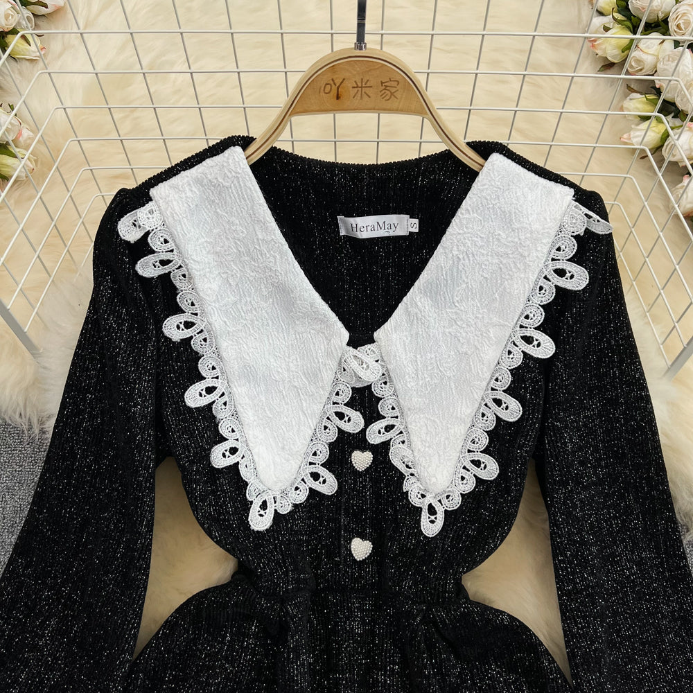 Black A-line Long Sleeve Dress, Black Fashion Dress P289
