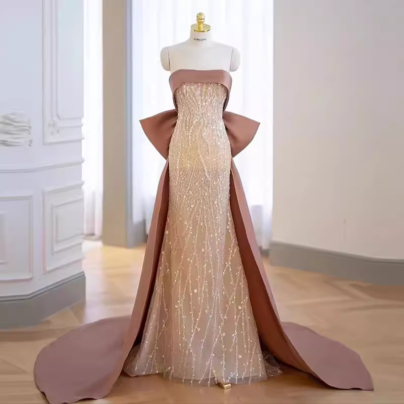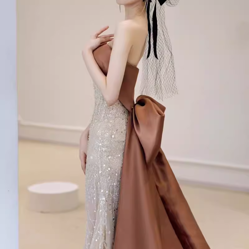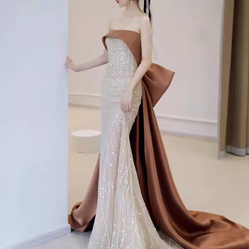Classic Mermaid Strapless Sequin Prom Dresses Long Prom Dress P479