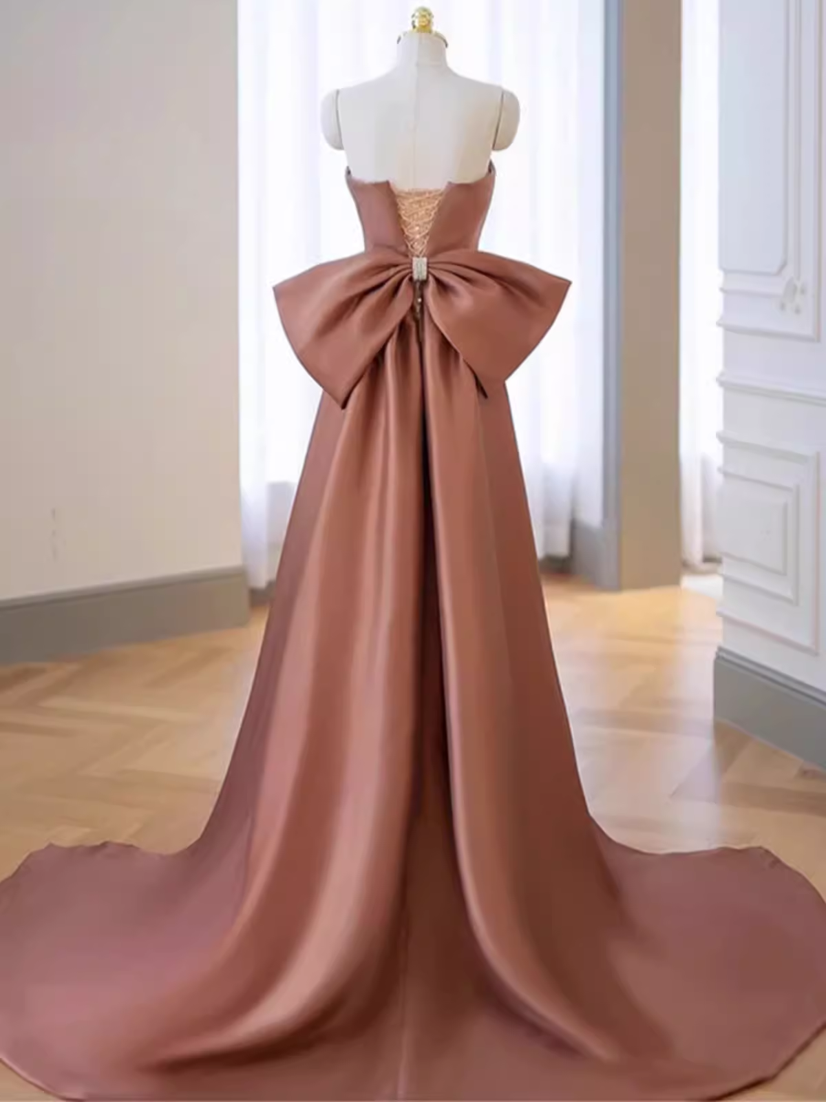 Custom dresses are made specifically to the measurements you provide (bust, waist, hips, height and hollow to floor). This means that once the garment is made, it cannot be worn by anyone else. Therefore, we are unable to accept any returns on custom-made gowns. Nonetheless, we will discuss with you methods that may help.