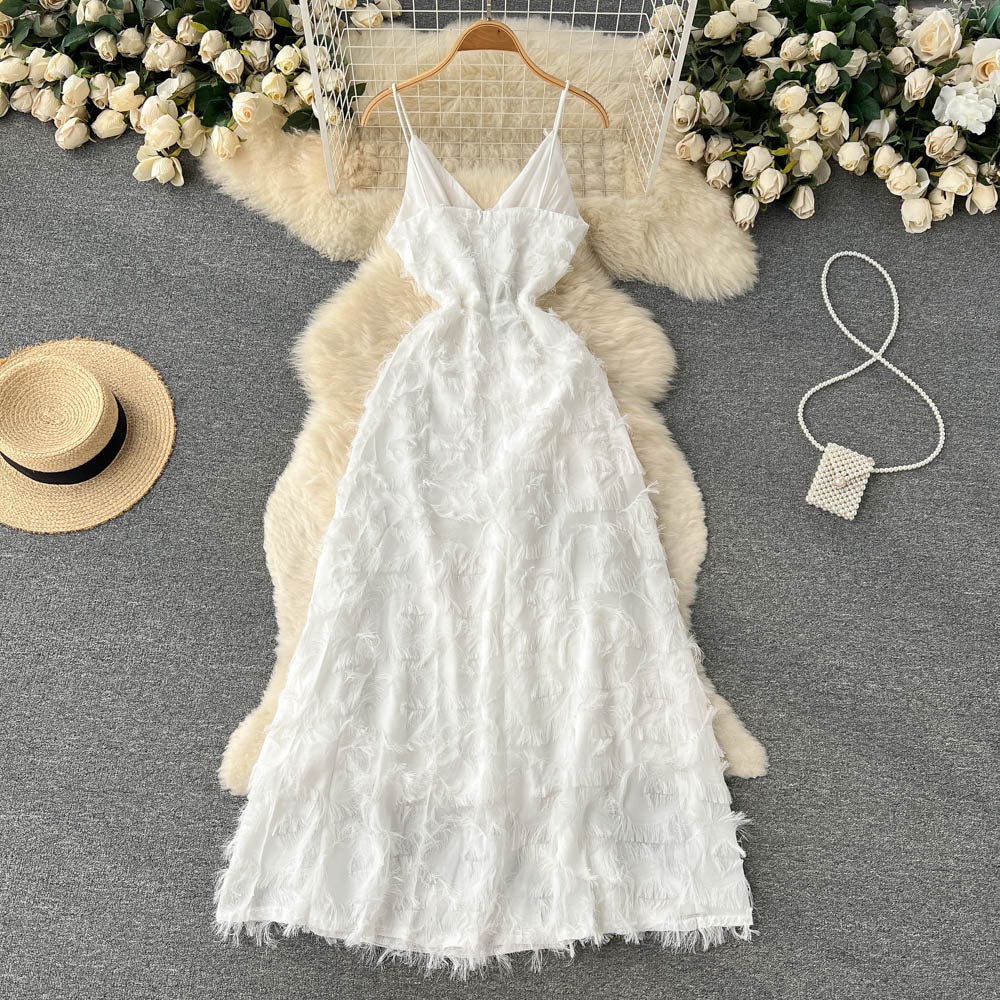 Cute A line Sleeveless Tassel Dress Beach Summer Holiday Dress P252