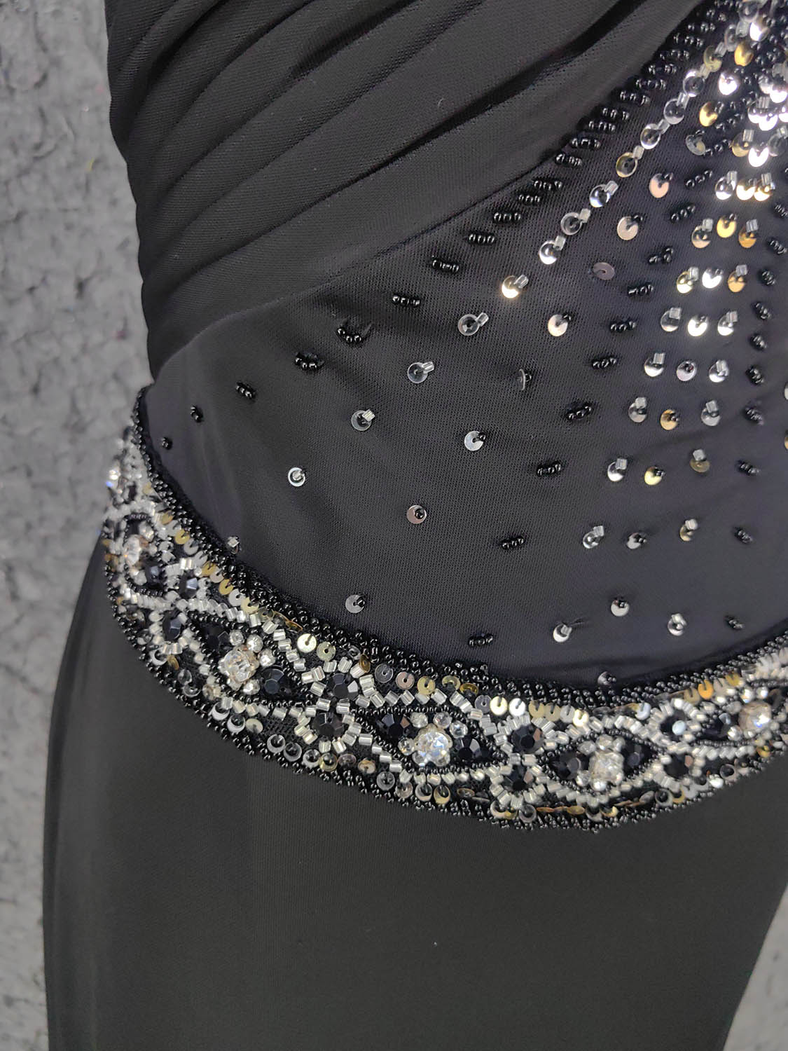 Elegant Black Spaghetti Strap Sequin Beaded Split Chiffon Long Prom Dress Evening Dress P4666