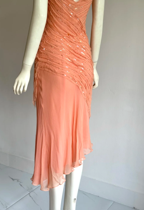 Elegant Coral Orange V-Neck Slim Beaded Sequined Chiffon Prom Dress Evening Dress P4858