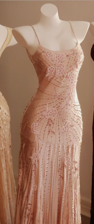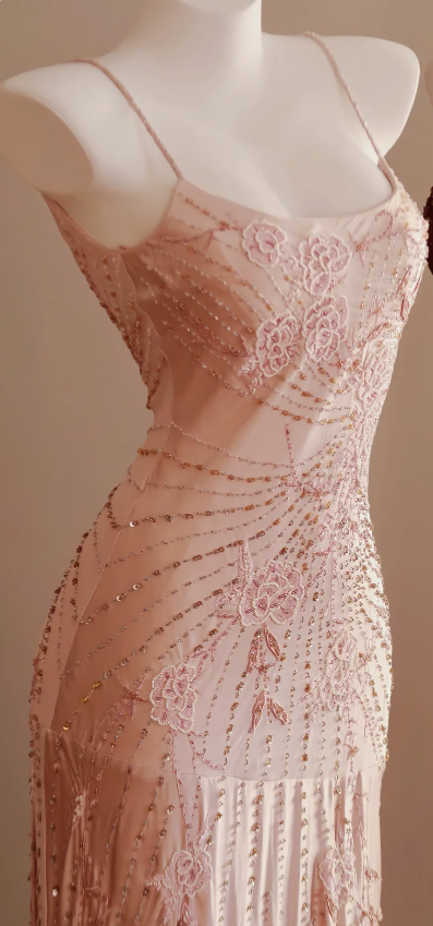 Elegant Pink Spaghetti Strap Beaded Chiffon Long Prom Dress Evening Dress P4813