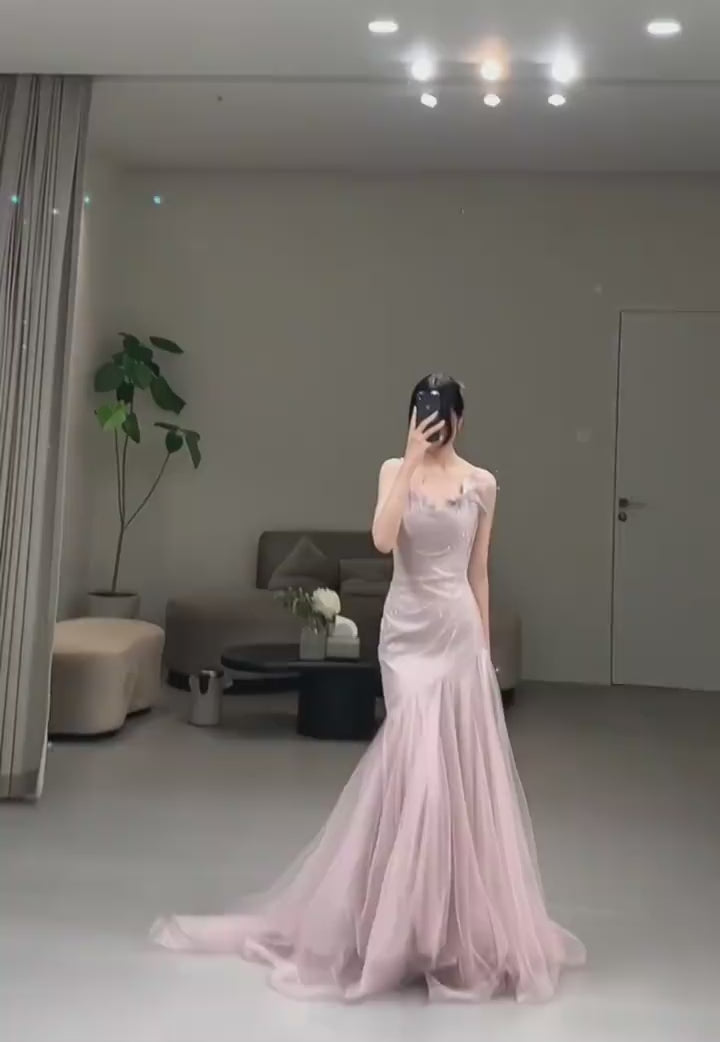 Fairy Mermaid Strapless Pink Prom Dresses Evening Dress P2040