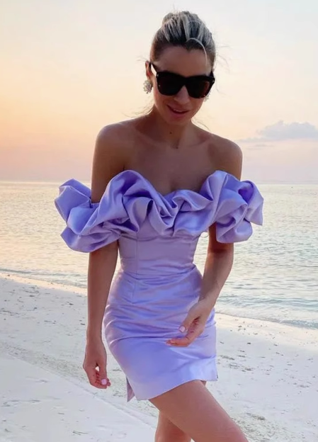 French style off-shoulder ruffle sleeves hip homecoming dress P3190