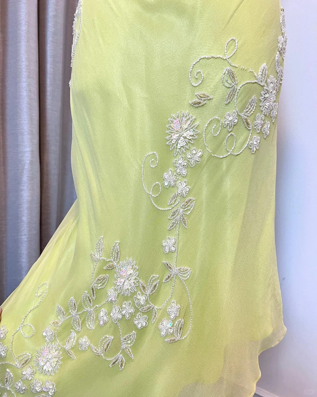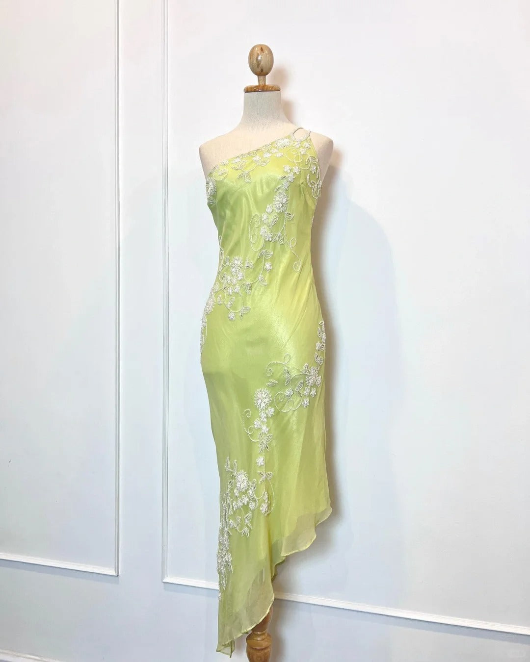 Fresh Green One Shoulder Sequin Embroidered Chiffon Mermaid Prom Dress P3392