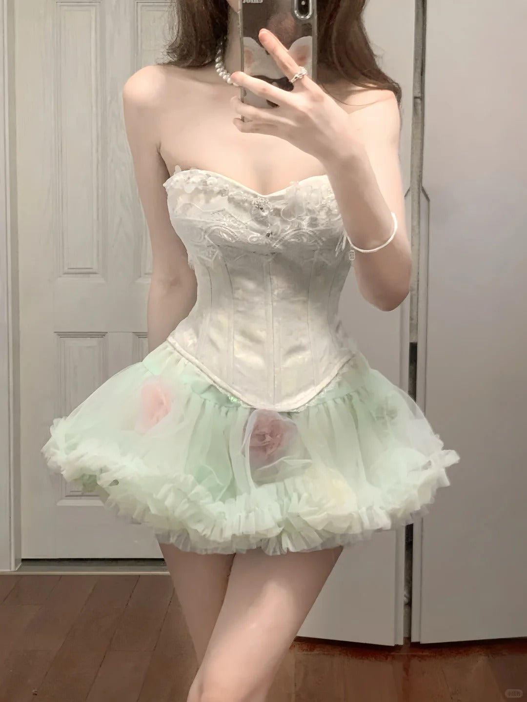Fresh Green Tulle Herringbone Bustier Mini Homecoming Dress P3571