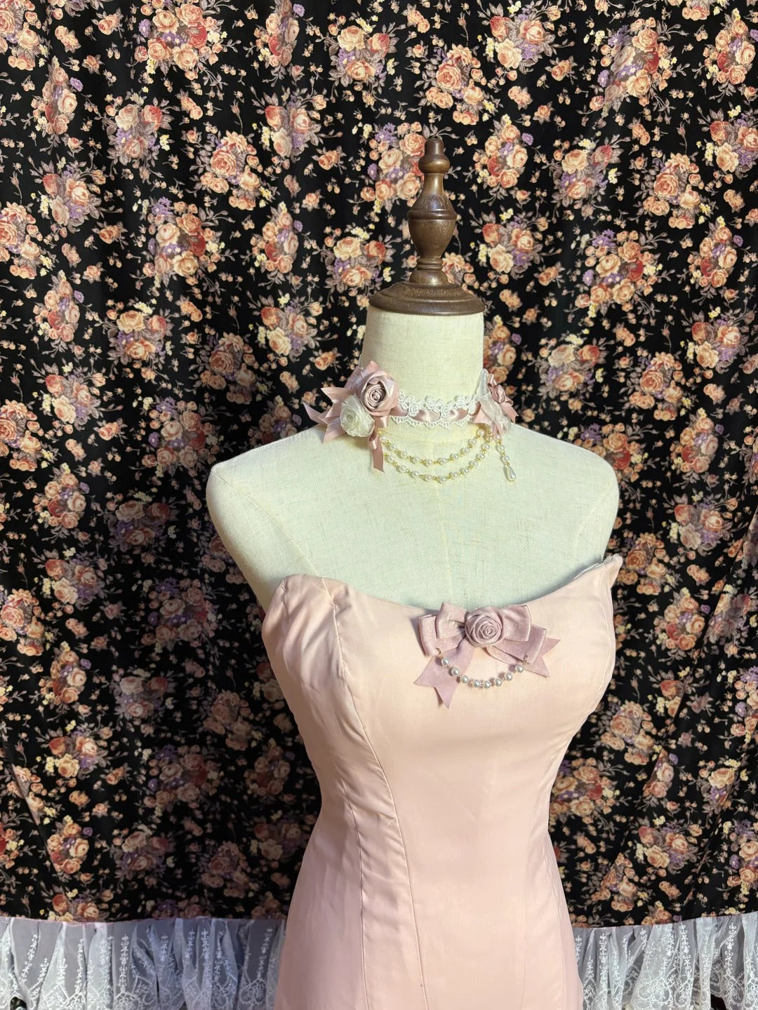 Gentle Pink Strapless Satin Tulle Mermaid Wedding Dress with Train P3045