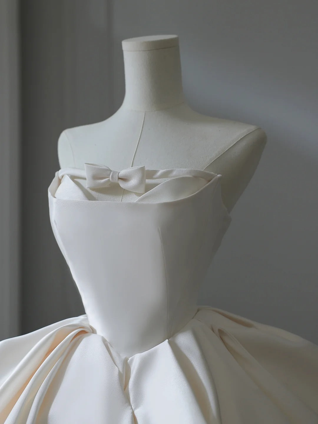 Girly Playful Bow A-line Tulle Satin Floor-length Wedding Dress P2534