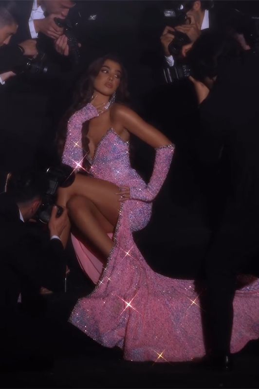 Gorgeous Pink Sleeveless Split Front Mermaid Prom Dress With Glitter Birthday Outfits P373