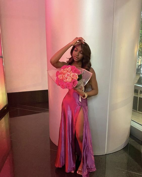 Gorgeous Pink Split Front Mermaid Prom Dress Birthday Outfits P374