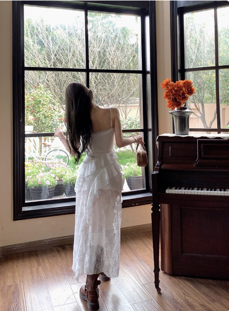 Irregular White Lace Suspenders Slim Fit 19th Birthday Homecoming Dress P3912