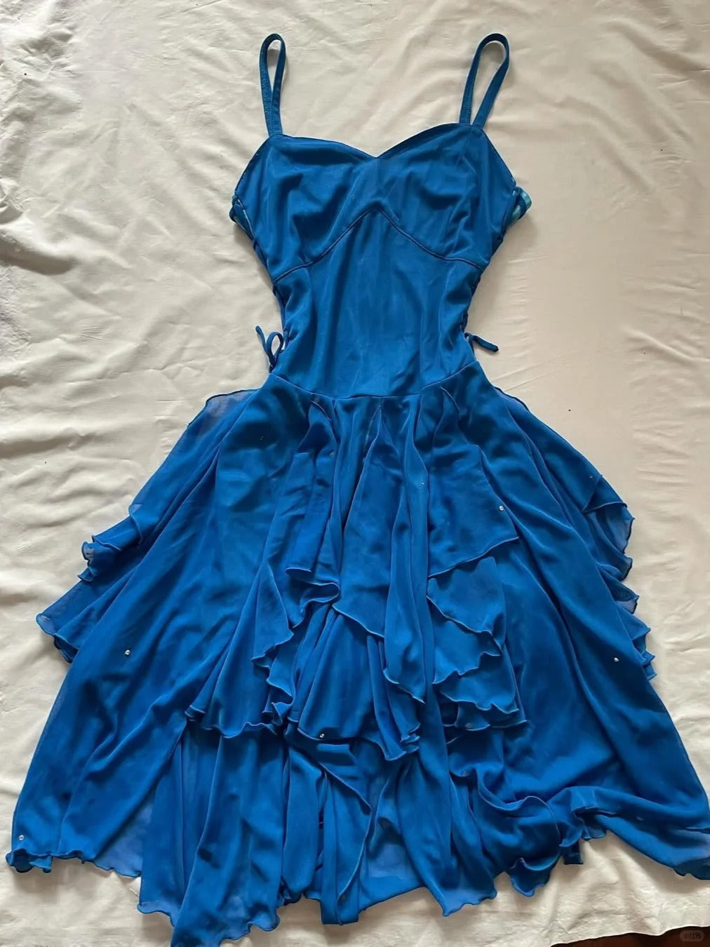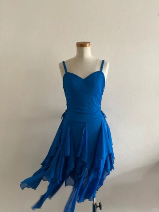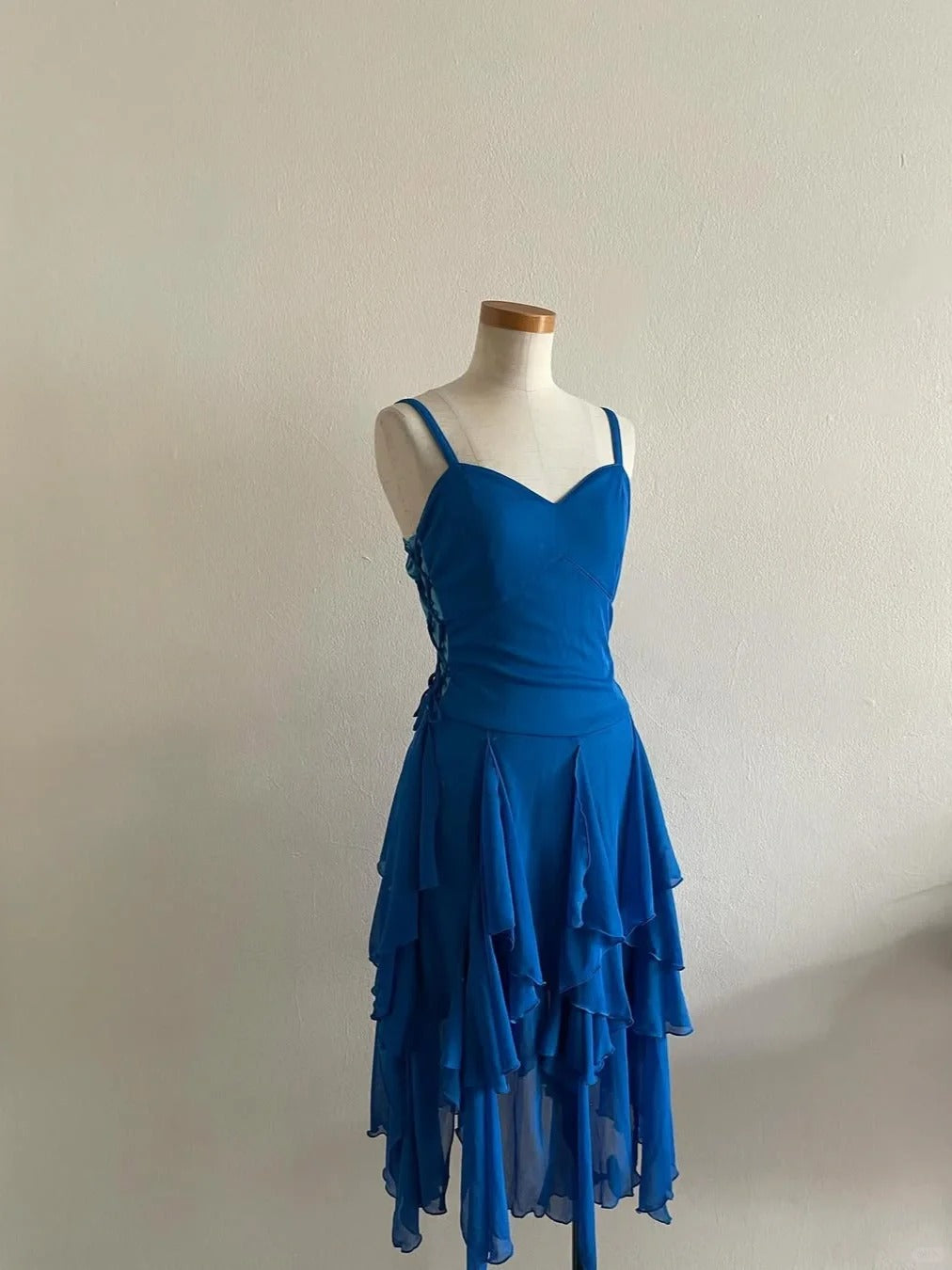 Lovely Royal Blue Chiffon Ruffle Spaghetti Strap Homecoming Dress P3417