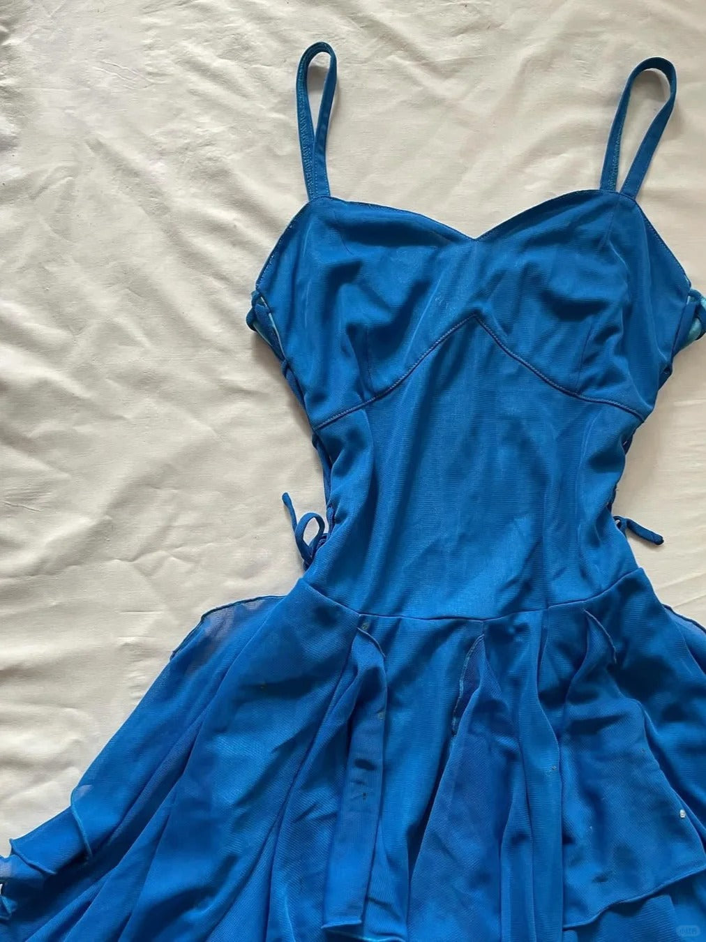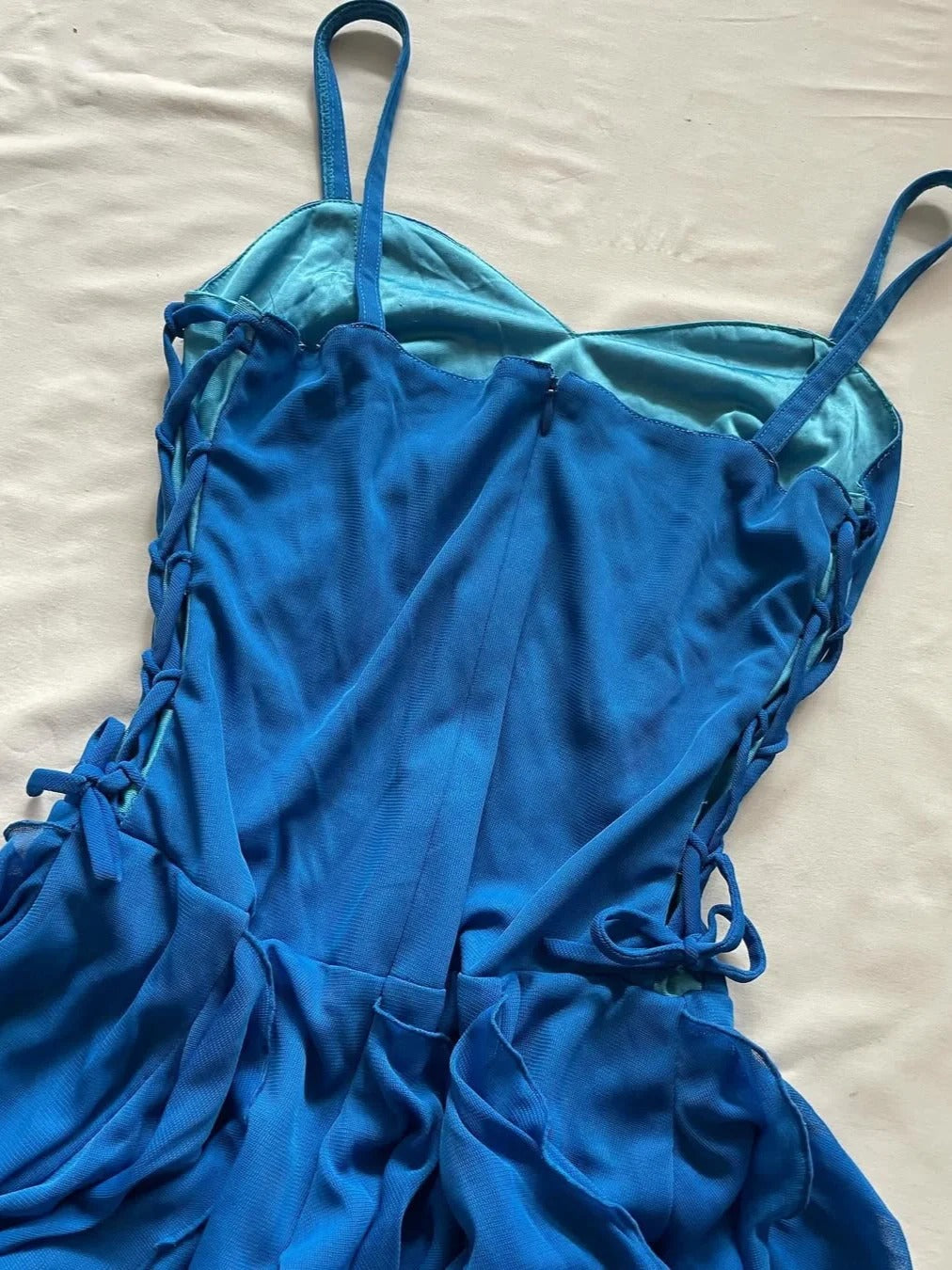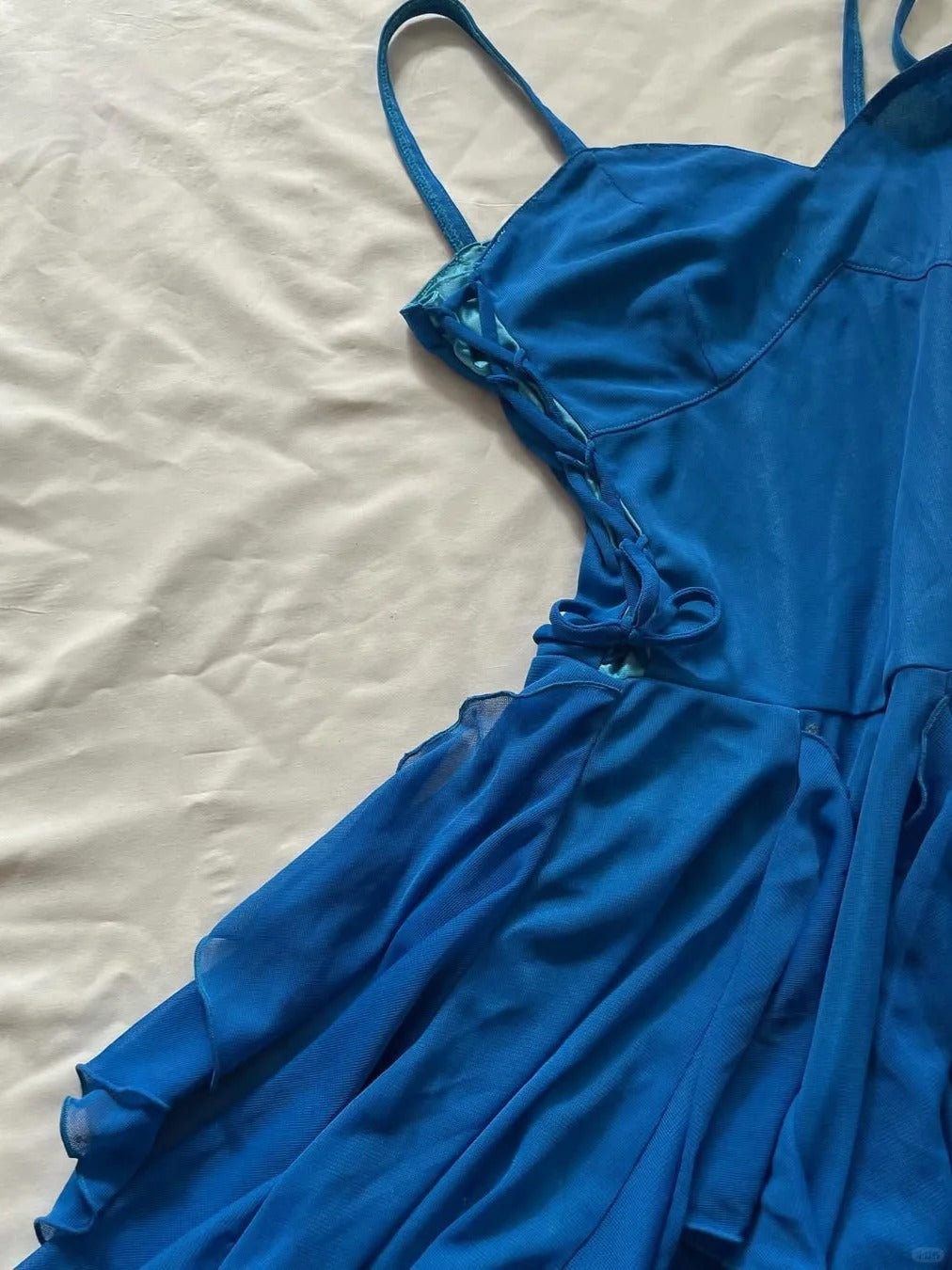 Lovely Royal Blue Chiffon Ruffle Spaghetti Strap Homecoming Dress P3417
