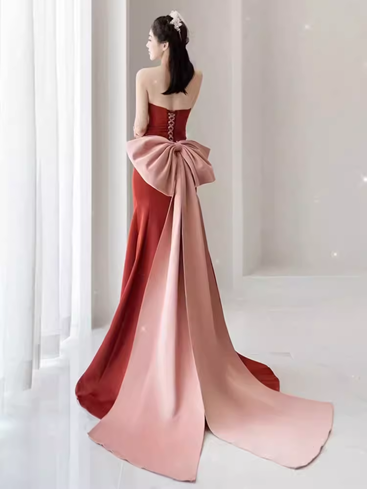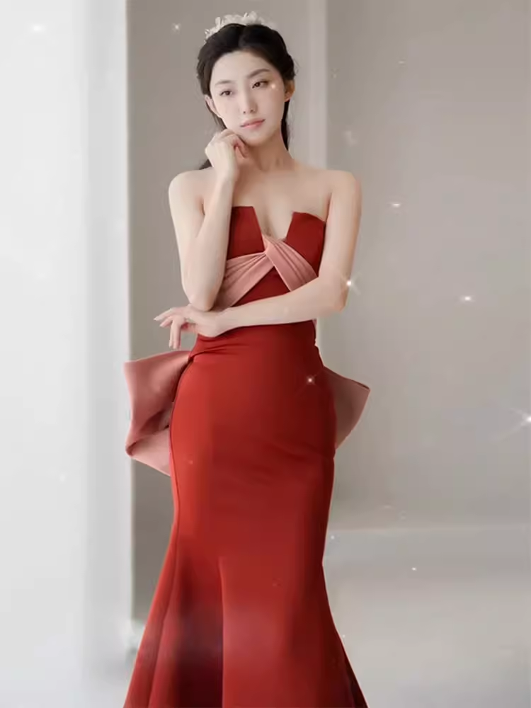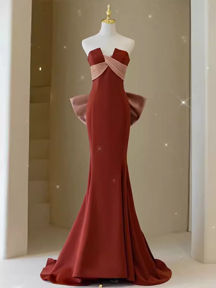Mermaid Satin Rust Red Prom Dress Long Prom Dresses P551