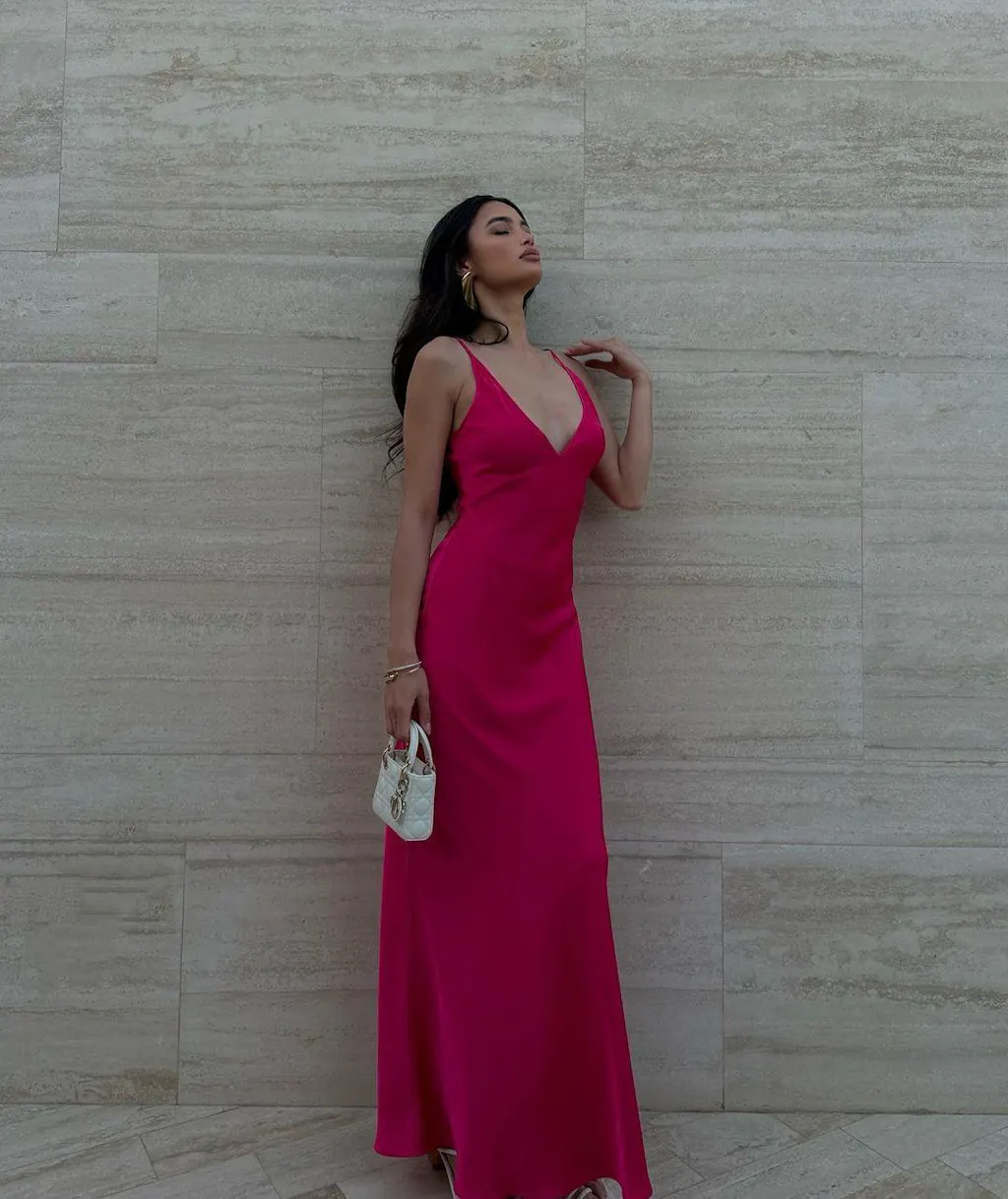 Sexy A line V neckline Sleeveless Party Dress Hot Pink Prom Dress P854