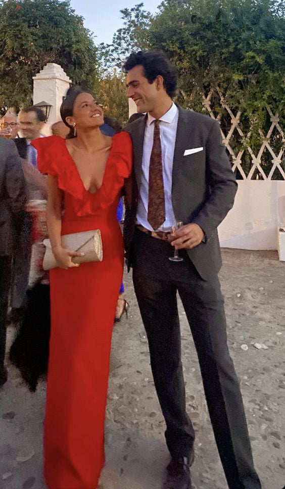 Sexy Sheath V neckline Red Long Prom Dresses 22th Birthday Outfit P1789