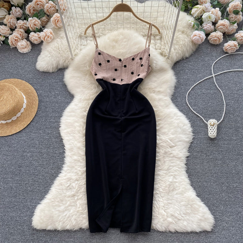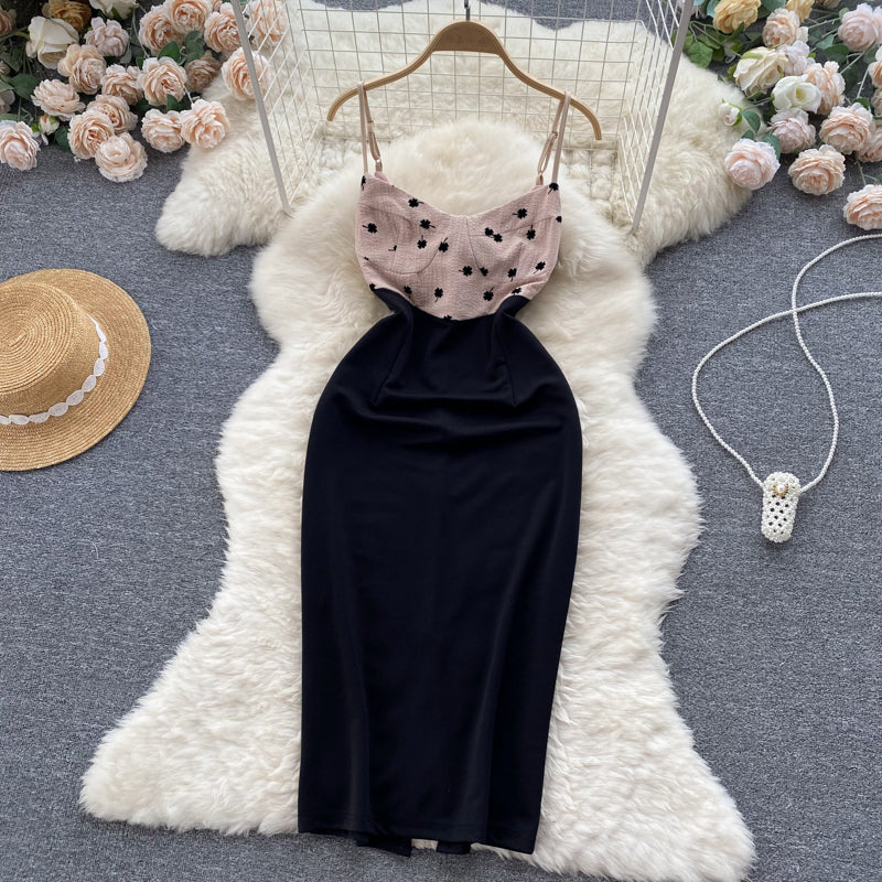 Sexy Straps Polka Dot Color Matching Dress Tight Women Holiday Dress P211
