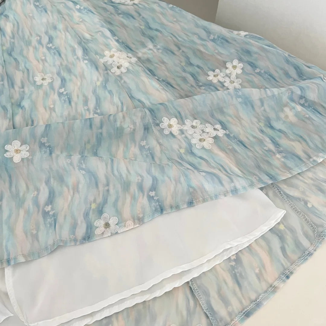 Sweet Blue And White Gradient A-line Halter Neck Chiffon Long Prom Dress Evening Dress P4014