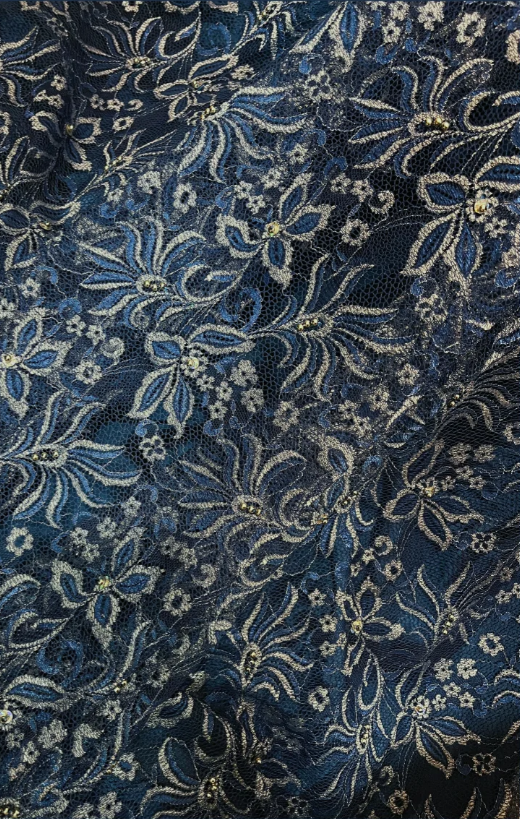 Vintage Navy Blue Pleated Satin Lace Beaded Long Prom Dress P3760