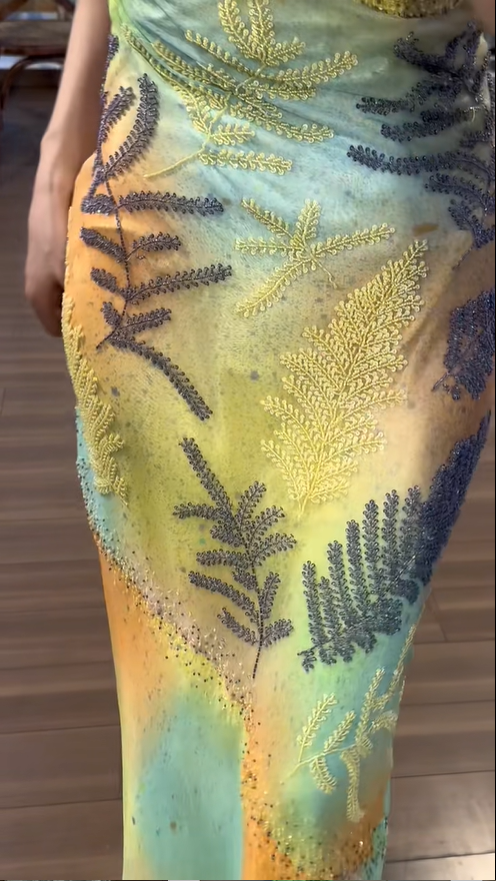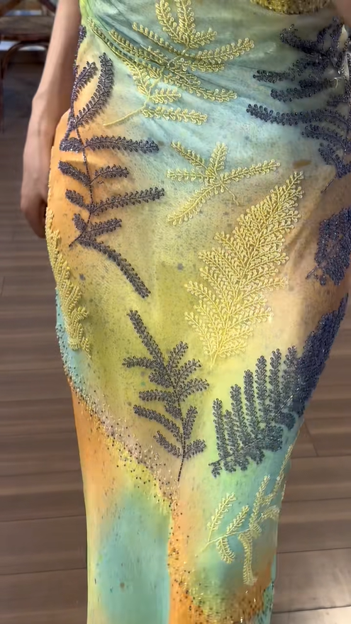 Vintage Strapless Oil Painting Beaded Chiffon Long Prom Dress P3790